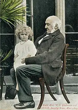 Gladstone was known affectionately by his supporters as "The People's William" or the "G.O.M." ("Grand Old Man", or, to political rivals "God's Only Mistake").[3] Historians often rank Gladstone as one of the greatest prime ministers in British history.[4][5][6][7]