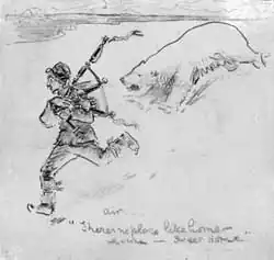 After some commercial whaling he published "Modern whaling and bear hunting" in 1917, which he again illustrated and which described his interest in polar bears. The Royal Scottish Geographical Society has humorous cartoons he created featuring polar bears. One of his polar bear sketches was used as an RSGS Christmas card.[10] Burn Murdoch also captured polar bears, and gave a young polar bear to the Zoological Society of Scotland.[10]