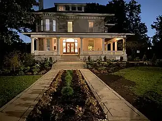 The William Copeland House was first constructed around 1873 for William H. Harman. The large, Italianate home represented a microcosm of the general character of homes in Oak Park before Wright began designing buildings. Homes of this style, "classically tinged" and "robust," dotted the landscape of small towns across the United States.[3] In 1909 the then-owner, Dr. William Copeland, a prominent surgeon with offices in Chicago and Cleveland, commissioned Frank Lloyd Wright to remodel the home.[4] It was the second commission for Wright from Copeland; in 1908 the architect had designed a garage for Copeland at the residence.[3]