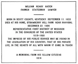 William Henry Hatch (September 11, 1833 – December 23, 1896) was a U.S. Representative from Missouri. He was the namesake of the Hatch Act of 1887, which established state agricultural experiment stations for the land-grant colleges. Hatch is also the namesake of Hatch Hall, a Residence Hall at the University of Missouri.