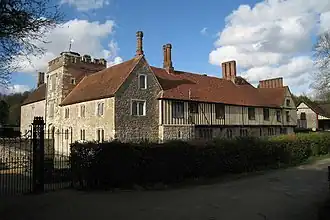 - Richard Haute ("the elder"), Esquire,[34] who inherited Ightham Mote, greatly enlarged and improved the manor house there. He married Elizabeth Tyrrell (daughter of Sir Thomas Tyrrell of Heron (Essex) and Anne Marney), widow of Sir Robert Darcy (who had died in 1469). A tutor to Prince Edward, one of the Princes in the Tower (King Edward V), Richard was attainted for association with Buckingham's Rebellion but escaped execution, was pardoned, and died in 1487.[35][36] Elizabeth died c. 1507.[37]