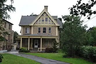 The William J. Greenman House is a historic home located at Cortland in Cortland County, New York. It was built in 1896, and based on a pattern book plan by architect George Franklin Barber. It is a 2½-story, Queen Anne-style frame dwelling. It is sheathed in clapboard and sits on a stone foundation. It features exuberant wood trim, decorative shingles and half-timbering; a wraparound porch with a circular section topped by a bell-shaped roof; and projecting bay windows. Also on the property is a contributing carriage house.[2]: 3