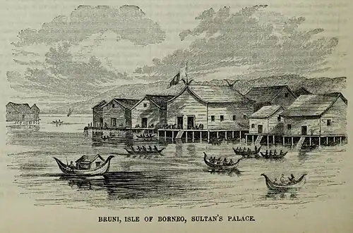 Following Senate consent, Fillmore signed the treaty 31 January 1853 and empowered McCluney as United States representative to Borneo the next day. The Powhatan sailed twelve days later and arrived off Borneo in the South China Sea in July. Anchoring offshore, a delegation of officers and crew rowed thirty miles upriver to the capital of Bruni for a ratification ceremony at the Sultan's Palace Monday, 11 July 1853.[40] In 2021, the treaty was still in effect, one of longest lasting agreements in U.S. diplomatic history.