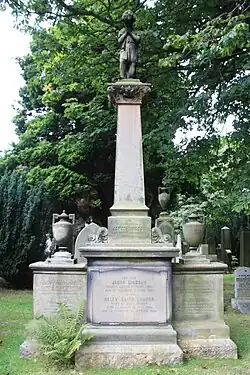 He died of exhaustion and malnutrition brought on by extreme dyspepsia[6] on 24 November 1880 at his home at 3 Hartington Gardens in Edinburgh. He was aged 50. He is buried with his parents in Dean Cemetery in western Edinburgh. The grave lies on a short curved path in the south-west of the cemetery.