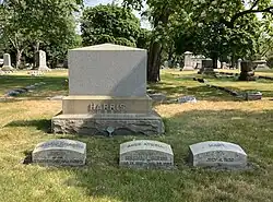 Harris experienced symptoms of heart disease, being indisposed during an 1887 trip to England. Upon his return to New York he was unable to walk, and he died September 2, 1887, at his residence in New York City.[1] He was buried in Rosehill Cemetery, Chicago.