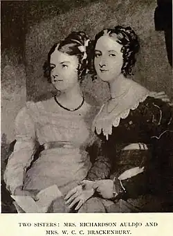 - Anna Maria Auldjo née McGillivray (1805–1856), married Thomas Richardson Auldjo (1808–1837), of Montreal, in 1826 in London, two daughters. Her husband was the son of The Hon. Alexander Auldjo by his wife Eweretta Jane Richardson, sister of The Hon. John Richardson of Montreal. Thomas' brother, John Auldjo, was the first Briton to climb Mont Blanc. They lived between her father's Scottish estate, Bhein Ghael, on the Isle of Mull and Noel House opposite Kensington Palace in London. She inherited £10,000 and half of her father's Scottish lands. He died at Naples, visiting his brother, and she at Noel House.