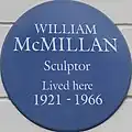 For most of his career he had a studio at Glebe Place in Chelsea, London, and was a member of the Chelsea Arts Club. A faux blue plaque exists at 63 Glebe Place, stating "William McMillan lived here". Even if this were the correct address, Glebe Place was his place of work not residence. In his later years he lived at 3 Cholmondley Walk, Richmond, London.[7] Shortly after his 90th birthday in September 1977 he was assaulted and robbed. He died of his injuries on 25 September 1977 in a hospital in Richmond upon Thames.[1] He was buried at Richmond Cemetery.[8]