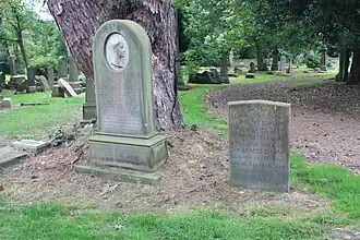 He is buried in Newington Cemetery in Edinburgh just south of the main roundel on a corner between paths. He lies with both his first and second wives: Mary Holmes (d. 1884, aged 47), Marjory Henderson (d. 1936, aged 80). Three of his children died in infancy and are buried with him. His daughter, Annie Mary (1864–1949), who married the art historian Sir James Caw, lies alongside.