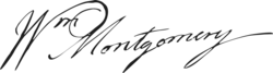 William Montgomery descends from Roger de Montgomery of Normandy via Arnulf de Montgomery through the Montgomery Clan.[8] His grandparents, Major John (aka "Boyne Water") and Margaret (née Dunbar) Montgomery, immigrated from County Armagh, Ireland to the Delaware Colony in 1722. They acquired extensive lands in Mill Creek Hundred of the Twelve-Mile Circle. John was a founding elder in the White Clay Creek Presbyterian Church.