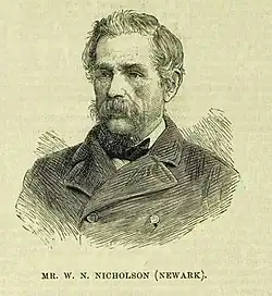 At the 1880 general election Nicholson was elected as a member of parliament (MP) for Newark.[3] He held the seat until the 1885 general election, when the two-seat parliamentary borough of Newark was abolished under the Redistribution of Seats Act. The town was then represented as part of a single-seat county division of Nottinghamshire, but Nicholson did not stand in the election.[4]