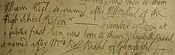 William was born at Ellisland Farm in Nithsdale on 9 April 1791, between 3am and 4am as recorded in the family register in the Burns family Bible.[4] The family later moved from Ellisland Farm to the 'Stinking Vennel' in Dumfries on 11 November 1791.[5] In late spring 1793 they made the move to a larger house in Millhole Brae (now Burns Street), where William's mother lived for the remainder of her life following his father's death in 1796.[6] Nine days previous to William's birth an illegitimate daughter, Elizabeth 'Betty' Burns was born to Robert Burns and Ann Park.[7]