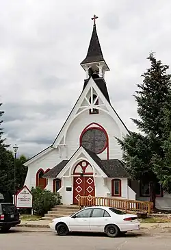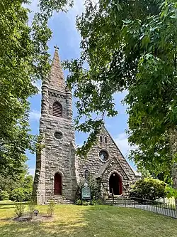 Most of Wentworth's churches were designed for Episcopalian congregations. In Massachusetts, these included the Church of the Good Shepherd (1876) in Dedham[5] and the Church of the Messiah (1889) in Woods Hole[6] and in Vermont, St. Luke's (1871) in Chester[7] and St. Andrew's (1878) in St. Johnsbury.[8] His practice was by no means limited to New England. Elsewhere in the United States, he designed St. Paul's (1879) in Waco, Texas,[9] St. George's (1881) in Leadville, Colorado,[10] St. James (1885) in Port Gibson, Mississippi,[11] St. Lawrence (1889, NRHP-listed) in Alexandria Bay, New York,[12] Trinity (1890, NRHP-listed)–his most elaborate parish church–in Watertown, New York,[13] St. Luke's (1892, burned) in Norfolk, Virginia,[14] St. Luke's (1894, NRHP-listed) in Jamestown, New York,[15] and Trinity Cathedral (1894) in Easton, Maryland.[16] Abroad, he designed the Collegiate Memorial (1884, demolished) of St. John's University in Shanghai[17] and the Irving Memorial (projected 1885, begun 1898) above Robertsport, Liberia.[18][19]