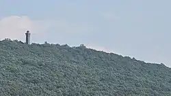 The site of the tower is the location of a former tower that had been built by the Mount Penn Gravity Railroad Company in 1889.[1][3] The company operated a scenic railway tour along the mountain ridge and the tower had been constructed as a tourist attraction, offering scenic vistas.[1] A hotel was also constructed during this time and stood from 1891 to 1959, when it was razed.[1] The site of the hotel is today a cement platform near the current tower.[1] The original tower operated from 1890 to 1923, when the wooden structure was destroyed in a purported act of arson.[1][3]