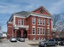 For forty years, the offices of the firm were in the Vaughan Building on Custom House Street, completed by Walker & Gould in 1879. They remained in the building even after it was gutted by fire in 1884, destroying their property.[5] During the year-long reconstruction of the building they were located in the Daniels Building across the street.[6] In 1921 they relocated to Hall's Building on Weybosset Street, where they remained until Arnold dissolved the firm.[7] Throughout the firm's history, it was known for the design of public buildings including state armories, town and city halls and public schools. All of the Walkers had important political connections which enabled them to obtain these commissions. Though never the most important part of their practice, the Walkers also designed churches, private homes, commercial buildings and movie theatres, the latter of which may have grown from their experience with wide-span structures in armories.[2]