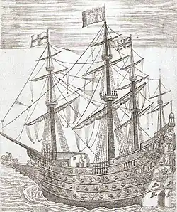 On the orders of Charles I of England, Rainsborowe led a successful naval expedition against the Barbary corsairs of Salé in North West Morocco in June 1637. The squadron comprised four of the warships of Charles I (the Leopard under Vice-Admiral William Rainsborowe, the Antelope under Vice-Admiral George Carteret, the Expedition under Capt. George White and the Providence under Capt. Edmund Seaman or Symonds), together with two privately owned ships (armed merchantmen) - the Hercules (Capt. Brian Harrison) and the Mary (Capt. George Hatch). Two additional English warships were later sent out as reinforcements - the Mary Rose under Capt. Thomas Trenchfield, and the Roebuck under "Master Broad of Rotherhithe". Rainsborowe's exploits were hailed in a court masque designed by Inigo Jones[1] For his services to end white slavery Rainsborowe was offered a hereditary knighthood, which he declined, and was presented with a Gold Chain and Medal by Charles I.[2] Captain Rainsborowe's Emblem was a Saracen's head crest. The Saracen Head[3] as interpreted as 'the head of the foreigner'; the foreigner being the much-feared pirates of the north African coast. Usually referred to as Turks, these marauders were in the white slavery business. This emblem represented Captain Rainsborowe's success at ending White Slavery against the Barbary pirates in Morocco in 1637.