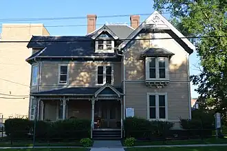 The William S. Bailey House is a historic house located at 100 South Campbell Street in Macomb, Illinois. The house was built in 1887 for William S. Bailey, a prominent local businessman who built several of the buildings on Macomb's town square. The house has a Queen Anne style design with Eastlake details; it is one of the best-preserved Queen Anne homes in Macomb. The 2+12-story house has a hipped roof with cross gables; the gable ends are decorated with spindlework cresting. Three brick chimneys with patterned masonry provide ventilation for the house's fireplaces and kitchen stove. The front porch features a spindlework railing and decorative trim along the roof and the entry pediment.[2]