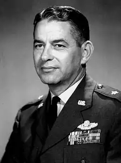 In the European Theater, he led a bomber squadron and earned many U.S. and foreign decorations, including the Silver Star, the Distinguished Flying Cross with three Oak Leaf Clusters, and the Croix de Guerre with Palm. After more postwar air commands, he was named military assistant to the secretary of the Air Force in 1958. He was Commandant of Cadets at the United States Air Force Academy from 1961 to 1963.