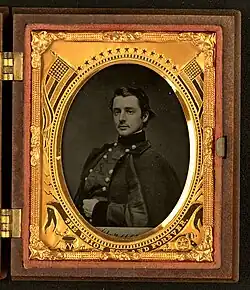Ruby ambrotype of William Sprague in frame captioned "Union Now and Forever" (Liljenquist Collection)