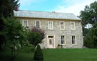 This historic structure consists of three sections: an L-shaped stone house that was built c. 1785, and a two-story, five-bay rectangular, limestone house that was designed in the Georgian style. The first section was built using eighteenth-century stone construction methods; the latter section was built in 1834. The third area, which was also created in 1834, was added to "tie the two sections together."[2]