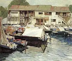 William Twigg-Smith's oil on canvas painting 'Hilo Sampans', 1917, 30 x 36 in.