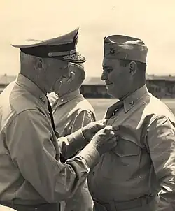 Colonel William W. Rogers, USMC being decorated with the Legion of Merit by Admiral Chester Nimitz