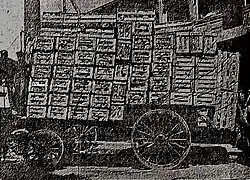 In 1909, Benjamin decided to execute a large publicity demonstration to draw attention to his business. Referred to by the Boston Globe as having been the largest load of cabbage ever hauled through the streets of Boston, the load was drawn into town by two horses on a wagon owned by Benjamin.[3] There were estimated to be 145 crates of cabbage heads, each containing about 45 each, totaling about 6,300 heads, and weighing in at 7.4 tons.[3]