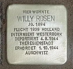 Rosen was born Willy Julius Rosenbaum[5] in Magdeburg, Germany.[6] In 1942, Rosen was incarcerated in the Westerbork transit camp, and in 1944, deported to Theresienstadt on 4 September, and then on to the Auschwitz concentration camp on 29 September, where he was murdered.[7]