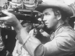 Lin McAdam (Jimmy Stewart) shooting in the rifle contest