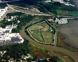 The park includes approximately 36 acres (15 ha) of land along the Macatawa River and the swamp leading into Lake Macatawa.
