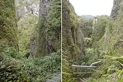 Windy Canyon is a canyon and associated walking track on Great Barrier Island, New Zealand. Located in the centre east of the island, the canyon is a wind funnel shaped from andesitic rock. The canyon is located on one of the highest stretches of the island, less than 200 m below the 621 m summit of Mount Hobson (the highest point of the island).[1] From the canyon it is possible to view the Okiwi and Awana lowlands (north and south, respectively, of the canyon).[2]
