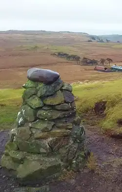 The hill is located on the eastern border of the River Calder catchment area[2] and is part of the Clyde Muirshiel Regional Park. Its summit is at OS grid ref NS 3183 6374.[3] Windy Hill is also the name of the first important house designed by Charles Rennie Mackintosh, which is located in Kilmacolm at some miles from the hill.[4]