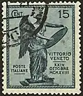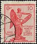 The Victory of Brescia was the subject of a series of stamps of the Kingdom of Italy, created by Alberto Repettati, for the third anniversary of the victory in the Battle of Vittorio Veneto.[42][43][44][45][46] The series,[47] printed by the Turin paper securities office, was issued by Italian Post on November 1, 1921, and also in the Italian colonies[48] of Eritrea, Libya, and Italian Somalia.[49][50][51]