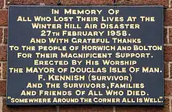 - ^ "Winter Hill disaster: Air crash victims remembered". BBC News. 27 February 2017. Retrieved 13 January 2021.
