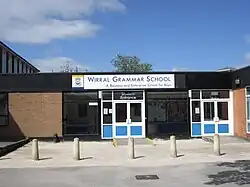 Wirral Grammar School for Boys is an 11–18 boys maintained selective grammar school founded in 1931. It is situated on a 9.1 acres (3.7 ha) site to the west of Port Sunlight at Cross Lane, Bebington, on the Wirral Peninsula in England. Academically successful, the school was placed 42nd in the top 100 in the Daily Telegraph A-Level table in 2015[4] and 145th in the DfE GCSE table in the same year,[5] but has not been inspected since its conversion to academy status.