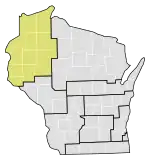 Barron, Bayfield, Burnett, Chippewa, Douglas, Dunn, Pierce, Polk, Sawyer, St. Croix, & Washburn counties (& Gates County, created from Chippewa in 1901)