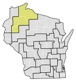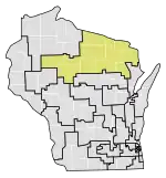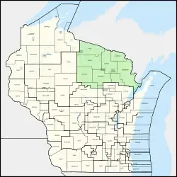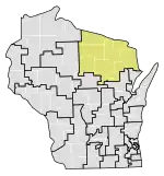 The 12th Senate district of Wisconsin is one of 33 districts in the Wisconsin Senate.[1] Located in northern Wisconsin, the district comprises Florence, Forest, Langlade, Lincoln, Marinette, Oneida, and Vilas counties, and parts of northern Oconto County, northwest Shawano County, and northeast Marathon County. It contains the cities of Antigo, Eagle River, Marinette, Merrill, Peshtigo, Rhinelander, and Tomahawk.[2]