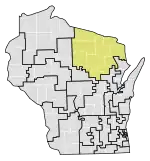 | --Vacant-- | 86th | 1983–1984 | ![]() part of Marathon County, northern Marinette County, part of Oconto County, & northwestern Shawano County