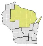 Ashland, Chippewa, Door, Florence, Langlade, Lincoln, Marathon, Marinette, Oconto, Price, Portage, Shawano, Taylor, Waupaca, & Wood counties (& Forest, Oneida, & Sawyer counties created from this territory during the 1880s)
