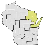 Wisconsin's 9th congressional district was a congressional district of the United States House of Representatives in Wisconsin. It was created following the 1870 census along with the 8th district, and was disbanded after the 2000 census.