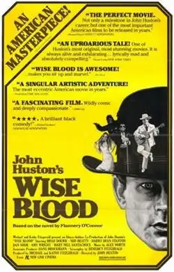 Wise Blood is a 1979 black comedy drama film directed by John Huston, based on Flannery O'Connor's 1952 Southern Gothic novel of the same name. It stars Brad Dourif, Ned Beatty, Harry Dean Stanton, Dan Shor, Amy Wright and Mary Nell Santacroce.[1][2] The film follows the lives of a war veteran preacher (Dourif) who preaches an atheistic "Church of Truth Without Christ."
