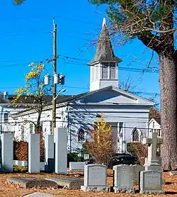 The sanctuary was built in 1840 in the Greek Revival style. The recessed entrance was a new and common design feature on religious architecture of the time.[3] The church was first called the "First Presbyterian Church of Color of Princeton", but reported to the General Assembly in 1845 as the "Witherspoon Street Presbyterian Church".[1]
