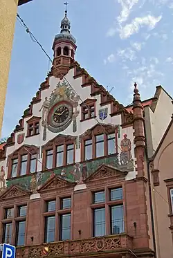 Major fires have forced many of the buildings in the town center and the nearby suburbs to be rebuilt. The most recent major fire was in 1892, which burned the old town hall, school, and two neighbouring buildings. The town hall was rebuilt in 1892/93 in the neo-Renaissance style.[4]