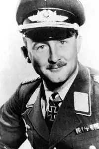 Upon his return to Germany he was awarded the Spanish Cross in Gold with Swords and Diamonds (Spanienkreuz in Gold mit Schwertern und Brillanten) and promoted to Hauptmann (Captain). He then served on the Stab (Headquarters) flight of the newly formed IV. Gruppe of the Jagdgeschwader 132 (JG 132—132nd Fighter Wing).[9] Over the next year, this Gruppe, which was commanded by Hauptmann Johannes Janke, was renamed to I. Gruppe of Jagdgeschwader 331 (JG 331—331st Fighter Wing) on 3 November 1938, before becoming the I. Gruppe of Jagdgeschwader 77 (JG 77—77th Fighter Wing) on 1 May 1939.[10]