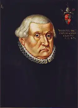 Wolfgang von Dalberg (1538 – April 5, 1601) was the Archbishop-Elector of Mainz from 1582 to 1601.