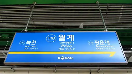 - ^ a b 월계역 (in Korean). KRIC. Retrieved 23 September 2015.