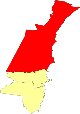 The area covers the northern and central suburbs of Wollongong, bounded by Helensburgh in the north, the Illawarra escarpment to the west, and by Macquarie Rivulet (Yallah, Haywards Bay) and the Lake Illawarra entrance (Windang) to the south.[2]