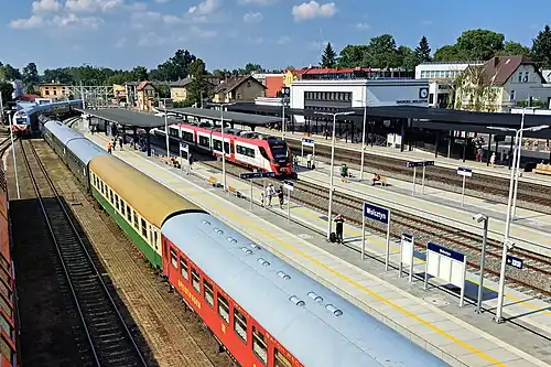 Wolsztyn railway station is a railway station serving the town of Wolsztyn, in the Greater Poland Voivodeship, Poland. The station opened on 1 June 1886 and is located on the Sulechów–Luboń koło Poznania railway, Leszno–Zbąszyń railway and the closed Wolsztyn–Zagan railway. The train services are operated by Koleje Wielkopolskie.