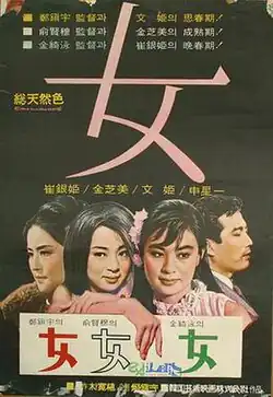 Woman (Korean) is a 1968 three-part South Korean film directed by Kim Ki-young, Jung Jin-woo and Yu Hyun-mok. The film was based on ideas of Kim Ki-young's wife, Kim Yu-bong, and Kim directed the last third.[2]