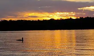 ![]() A Common Loon in the setting sun on Woman Lake | |