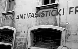 The Women's Antifascist Front (Serbo-Croatian: Antifašistička fronta žena, Антифашистички фронт жена, abbreviated AFŽ/AФЖ; Slovene: Protifašistična fronta žensk; Macedonian: Антифашистички фронт на жените), was a Yugoslav feminist and anti-fascist mass organisation. The predecessor to several feminist front groups in the former Yugoslavia, and present-day organisations in the region, the AFŽ was heavily involved in organising and participating in the Partisans, the communist and multi-ethnic resistance to Nazi occupation of Yugoslavia during World War II.